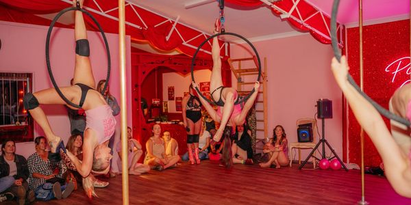 Guests can enjoy complementary bubbles and canapés while being wowed by the performers. Perfect to come along to if you are considering pole classes, your partners, friends and family are all very welcome to come to watch you perform.